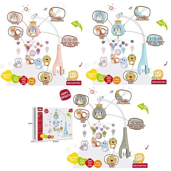 Опис Карусель на візок 368-6b-6g-6r дист.кер.(ІЧ),підвіски 5шт.(брязкал.),3 кольори,муз.,світло,бат.,кор.