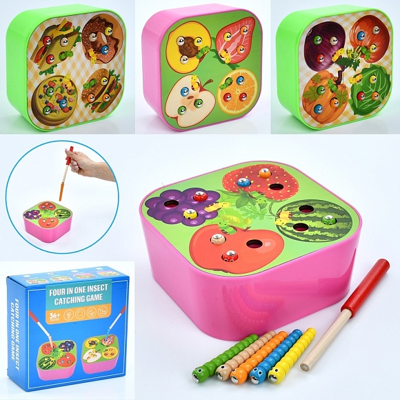 Опис Дерев'яна іграшка Риболовля MD 1516 магнітна гра,Дістань гусеницю,ігрове поле,1 вудка,4види,кор.,16,