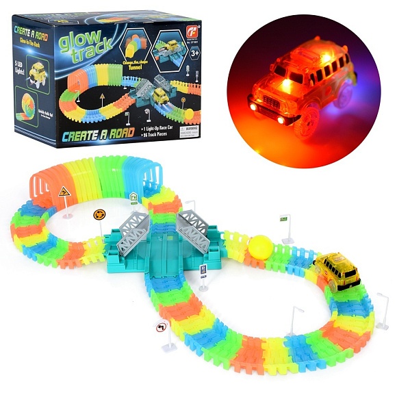 Трек CF1801 світ. в темряві, машинка-їздить, кулька, 96 дет., світло, бат., кор., 27-18-13 см.