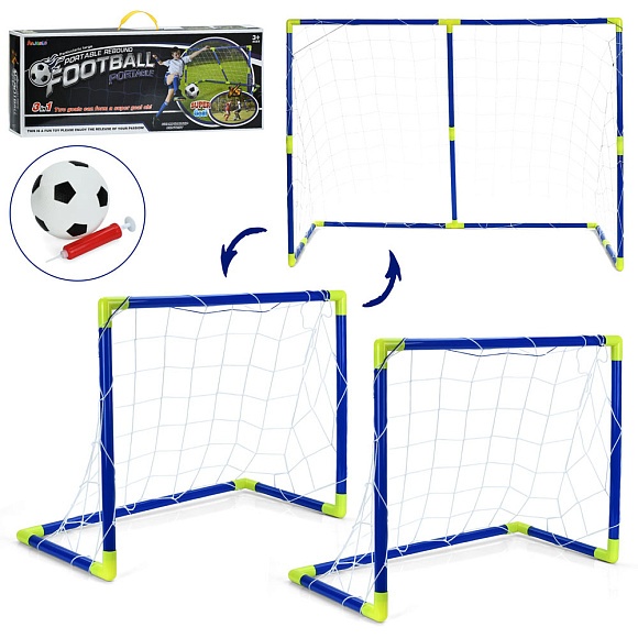 Футбольні ворота MR 1535 3в1, сітка 3 шт., насос, м'яч, кор., 67,5-26,5-6,5 см.