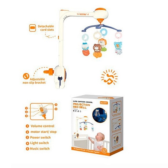 Опис Карусель на кроватку yk7014 мобіль на ліжко,підвіски 4шт.проектор,регул.гучності,муз.,бат.,кор.,22,5