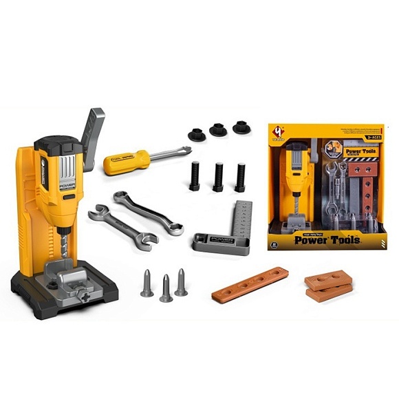 Набір інструментів T038 дриль на стійці,вертик.дриль,викрутка гайк.ключі,болти,муз.,світло,бат.,кор.