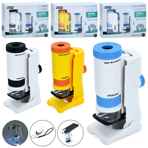 Оптичний прилад W5804B мікроскоп, 60-200 Х, світло-2режими, 3 кольори,бат.(табл),кор.,18,5-15-5,5см.