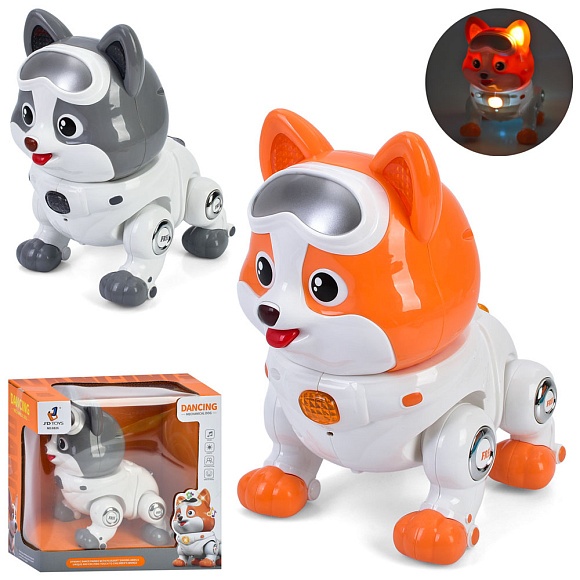 Музична іграшка 8826 собака, ходить, 2 кольори, муз., світло, бат., кор., 23,5-21,5-13,5 см.