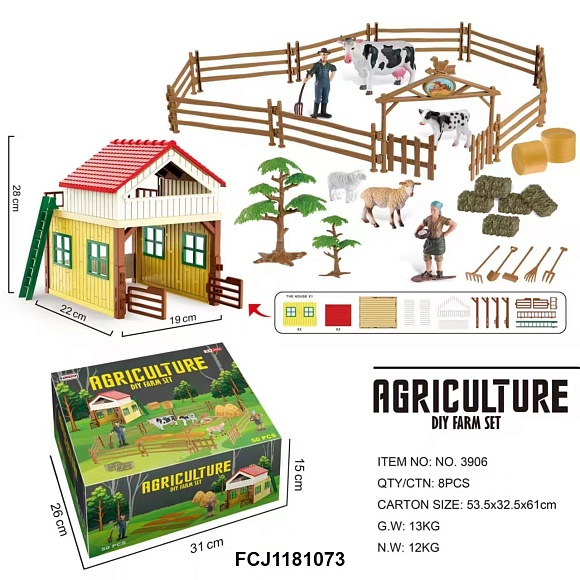 Фермерський набір 3906 тварини 5шт, фігурки 2шт, будівля, паркан, дерева,садові інстр,50дет.,кор.,31