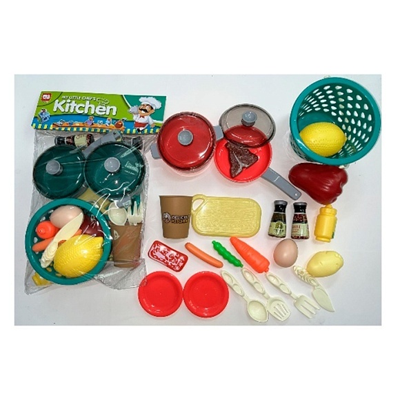 Опис Набір посуду 0014-10 (48шт) каструля, сковорідка, тарілки, кухонний набір, продукти, у пакеті, 25-39-11см