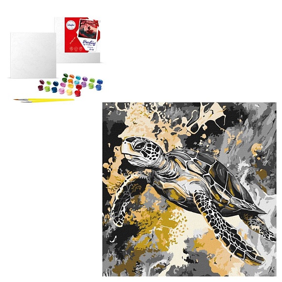 Опис Набір для розпису по номерах "Золота черепаха з фарбами металiк extra" 40х40см