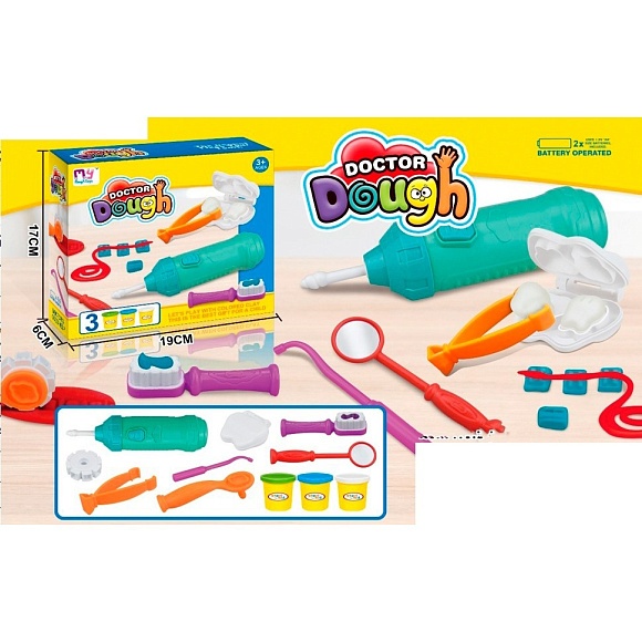 Опис Пластилін mk 5046 стоматолог, інструменти., 3 кольори (баночка з кришкою), аром., кор., 17-19-6 см.