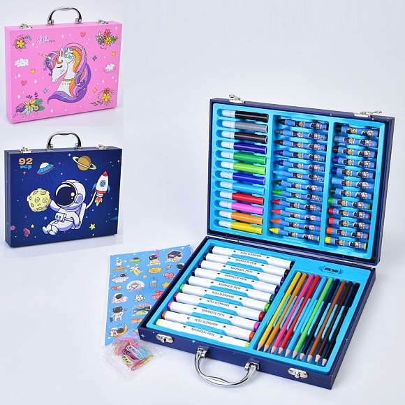 Опис Набір для творчості mk 5442 92пред.,олівці,фломаст.,наліпки,віск.крейда,скріпки,2види,валіза,30,5-23