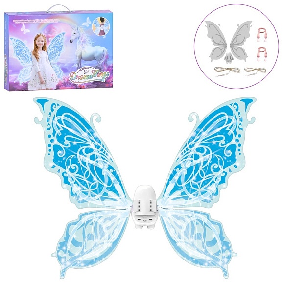 Опис Набір аксесуарів 85048e крила карнавальні, метелик, рухливі, 2 режими, муз.,бат.,кор.,48,5-33,5-8см.