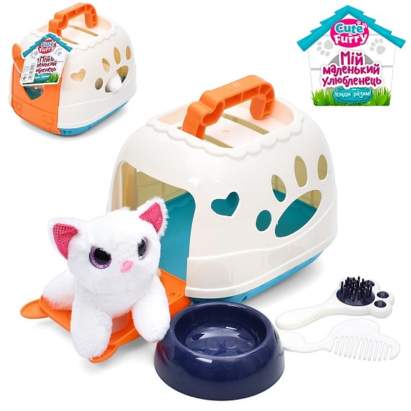 Тварина в переносці 866-5 кіт (плюш), аксесуари, переноска, 16-13-13 см.