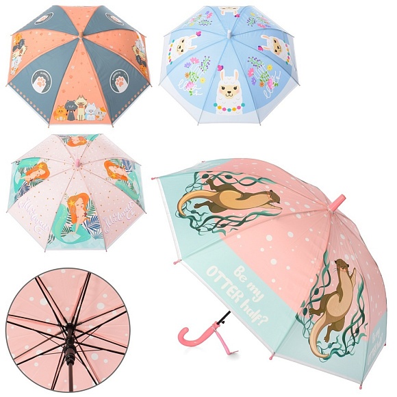 Опис Парасолька дитяча MK 4621 довж.66см., тростина 61см., діам.83см., спиця 48см, клейонка, 4 види, кул.