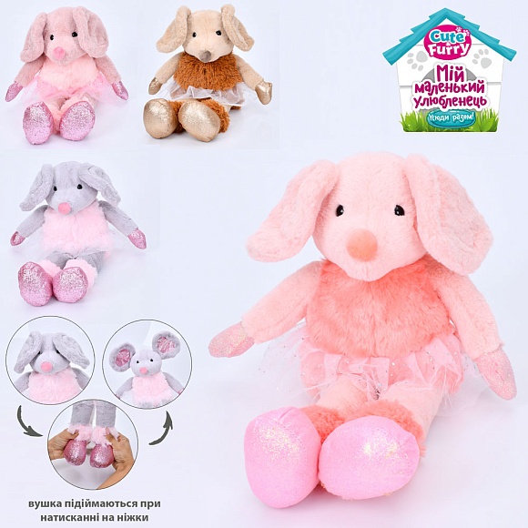 Опис М'яка іграшка fg240408182a мишка, рух. вушка, 4 кольори, муз., бат., кул., 48-18-15 см.