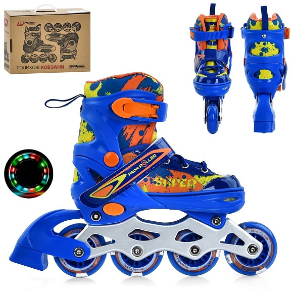 Ролики A4155-L-BL розсув.,шнурів.+бакля,алюм.рама,кол.ПУ70мм,LEDсвітло,устілка 24см,синій,кор.,42-35