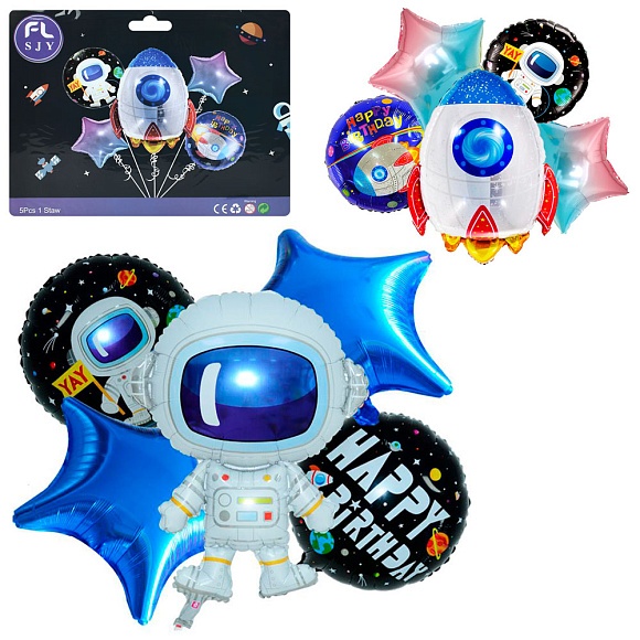 Опис Повiтрянi кульки mk 5650 космос,happy birthday,наб.5шт.(куля 2шт,зірка 2шт),2види,кул.,22-16,5-0,5см