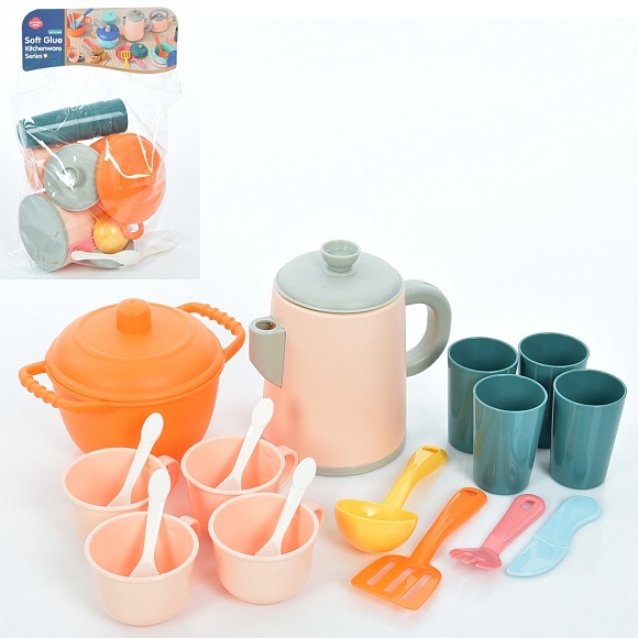 Набір посуду HG-9037 кастрюля,чайник,ложка,ніж,виделка,стаканчики 4шт.,чашки 4шт.,кул.,18,5-33-10см.