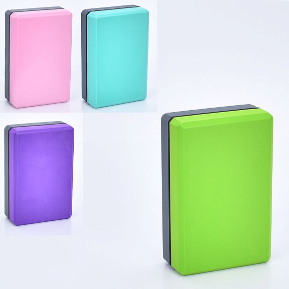 Опис Блок для йоги MS 0858-16 EVA, двокольоровий, 4 кольори, 120г, кул., 23-15-7,5 см.