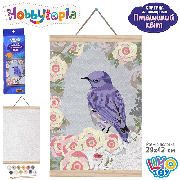 Опис Набір для творчості M 5869 UA картина за номерами,Пташиний квіт,полотно на підрамнику,2пензлика,фарб