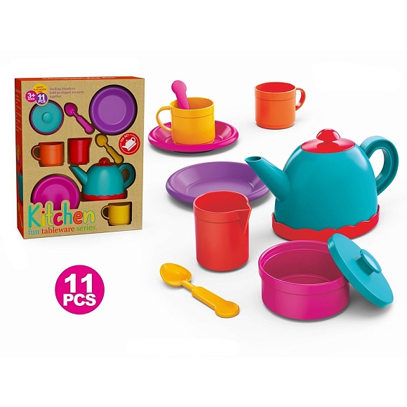 Набір посуду XG1-22D чайник, каструля, чашки, тарілки, 11пр, в кор-ці, 29,5-37-9,5см