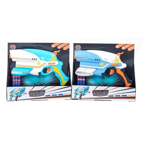 Опис Пістолет 6015 м'які кулі 6 шт. (3 шт.-присоски), 2 кольори, кор., 30,5-28-6,5 см.