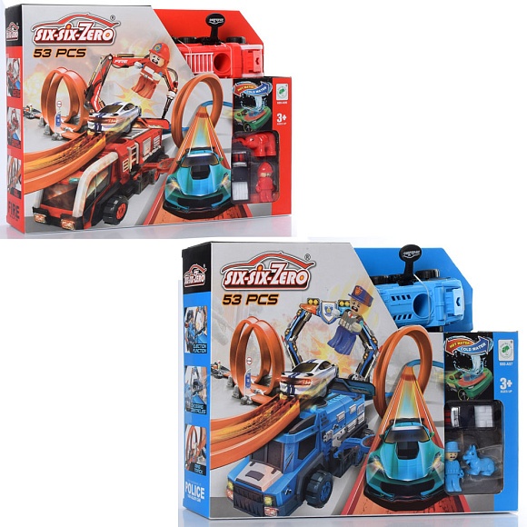 Опис Трек 660-A97-98 170-13-23 см., машинка, 53 дет., 2 види (поліція, пожежна), кор., 40,5-30,5-9,5см.