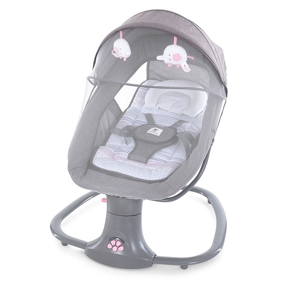 Опис Заколисуючий центр 8106 пульт, USB, таймер, москітна сітка, муз., льон, бежево-рожевий.