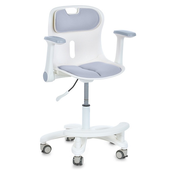 Опис Дитяче крісло M 6151-11 з підлокітником і підніж.,блок.коліс,м'яке сид. і спинка,регул.висота,сірий