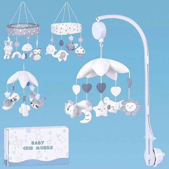 Карусель на кроватку HB 0068 ABCD на ліжко, заводна, підвіски, плюш, 4 види, муз., кор.,35,5-20-8см.