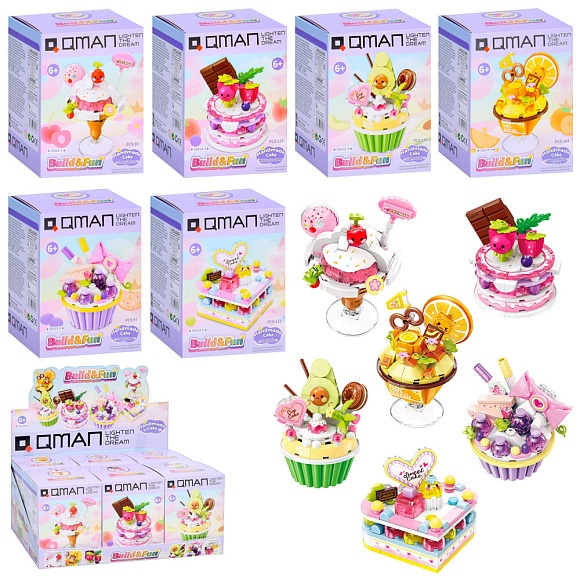Конструктор Qman 35019 солодощі, від 93дет., 6 видів, кор., 6 шт. в диспл., 28-12,5-16,5 см.