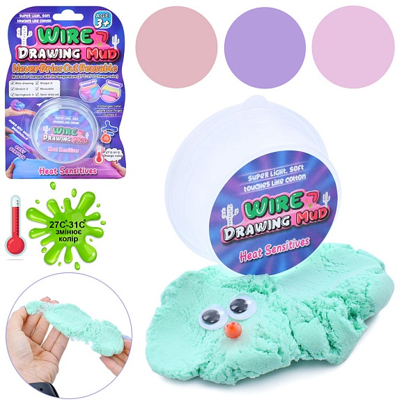 Опис Лизун MK 5089-4 жуйка для рук, котон, баночка з кришкою, змінює колір, 4 кольори, лист, 11,5-17-3 см