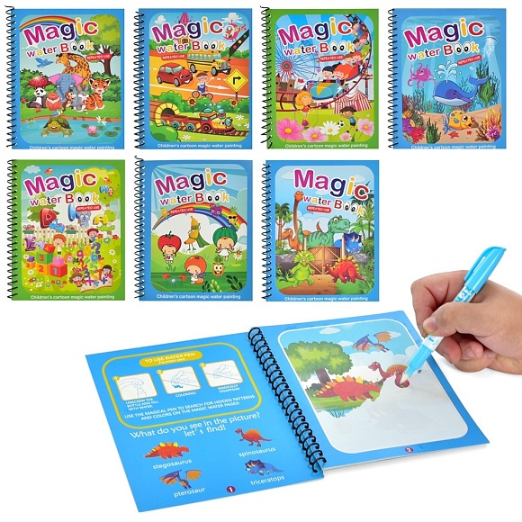 Книжка для малювання 80843-6-9-0-75-77-78 на спіралі, картон, малюй водою, 7 видів, кул.,18-25-1 см.