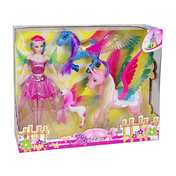 Опис Лялька 68410 фея, єдиноріг/пегас 3 шт., кор., 41-32-8 см.