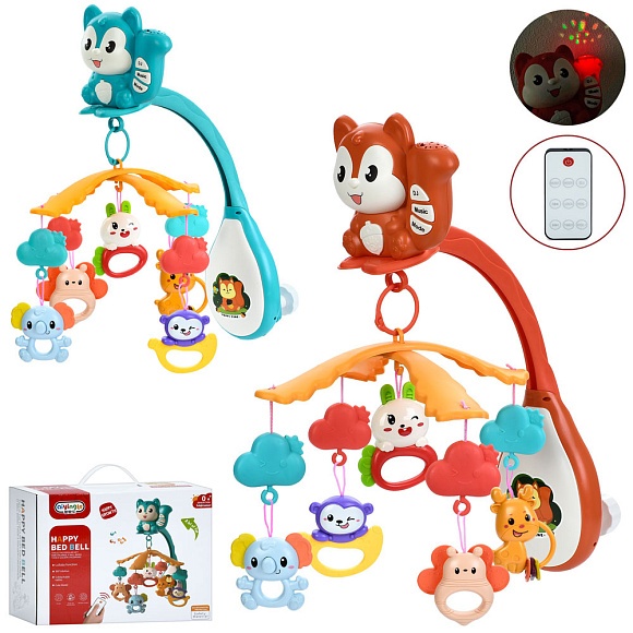 Карусель на кроватку 668-38N мобіль на ліжко,білка,підвіски(тварини),проект.,2кольори,муз.,бат.,кор.