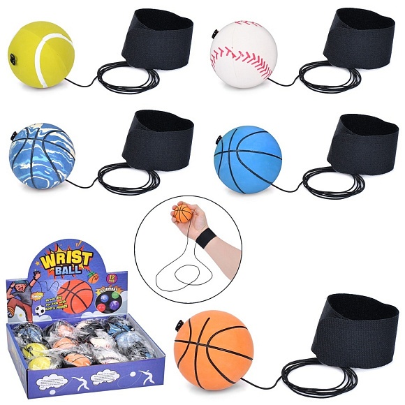 Опис М'яч дитячий ms 4363 на гумці+браслет, пакет, мікс видів, 12шт. в диспл., 26-20-6,5 см.
