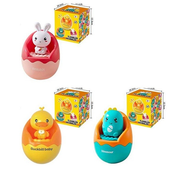 Опис Неваляшка G114-G851-G852 тварина/пташка у яйці, 3 види, муз., кор., 10-12-10 см.