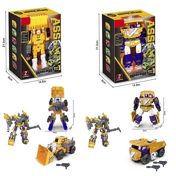 Опис Трансформер 908-1D-2D робот+будтехніка, зброя, 2 види, кор., 15-21,5-8 см.