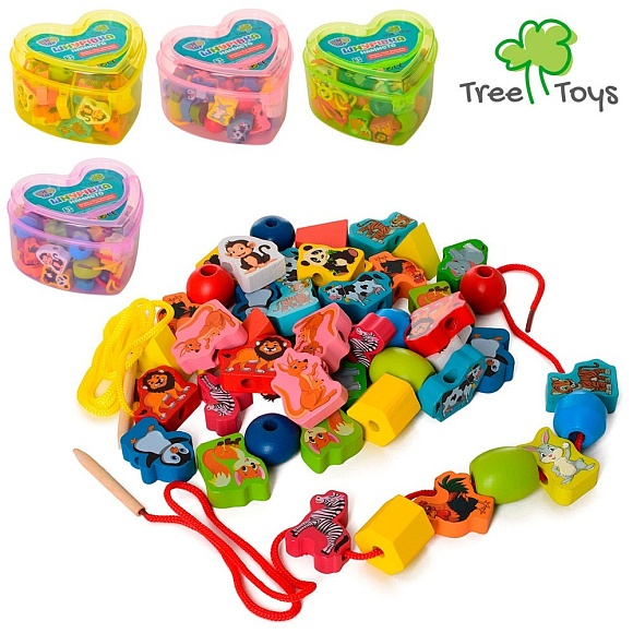 Дерев'яна іграшка Шнурівка MD 0344 фігурки-тварини, 4 види, колба, 14,5-13,5-9 см.