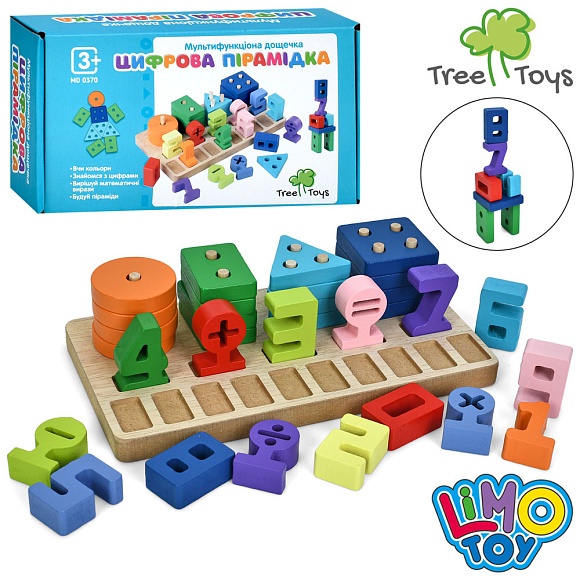 Опис Дерев’яна іграшка Багатофункціональна дошка md 0370 (30шт) ігрове поле, геометрика (геом.фігури 16шт), цифри, в кор-ці, 20-11-5см