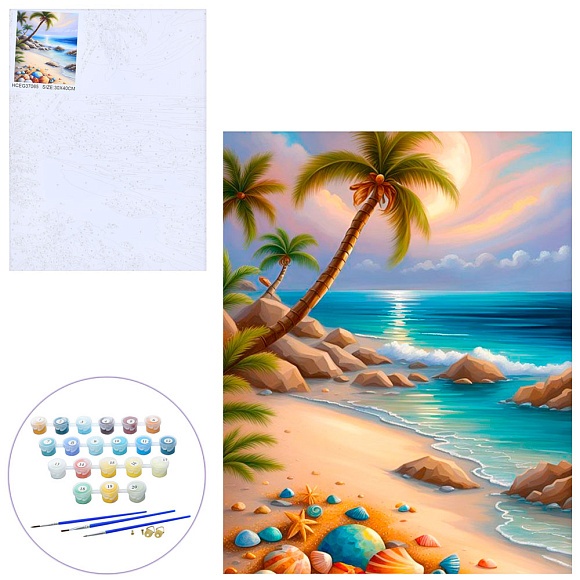 Опис Набір для творчості МК 5330 картина за номерами, На морському узбережжі, кул., 30-40-2 см.