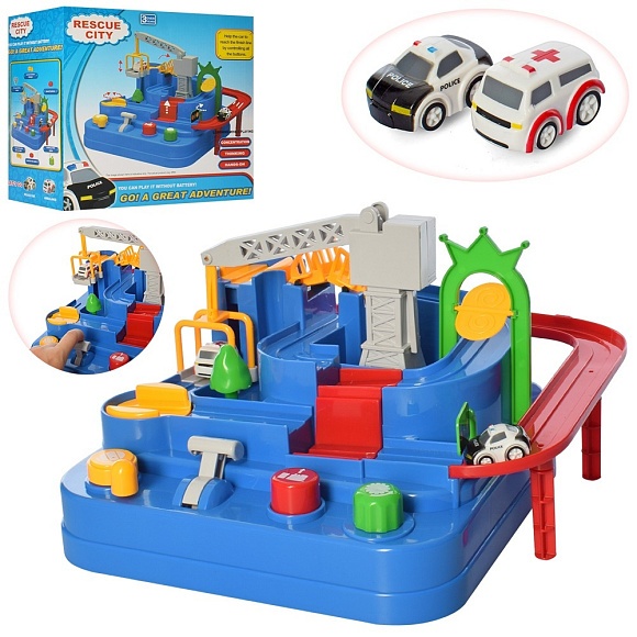 Трек T102A-1 машинки 2шт. (поліція/швидка допомога), рухомі дет., кор., 26,5-26,5-14,5см.
