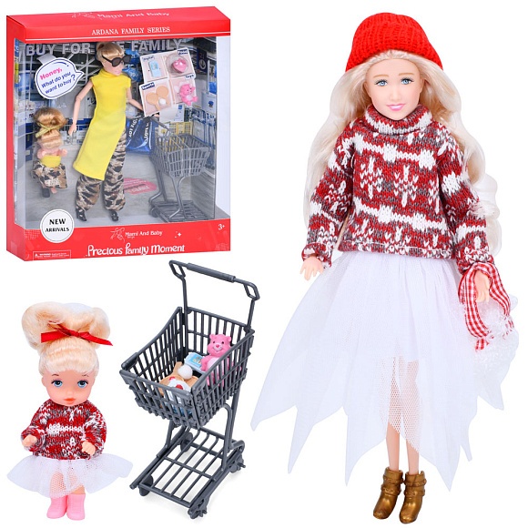 Опис Лялька a808ab шарнірна, з донькою, візок-супермаркет, аксесуари, 2 види, кор., 33-37-8,5 см.