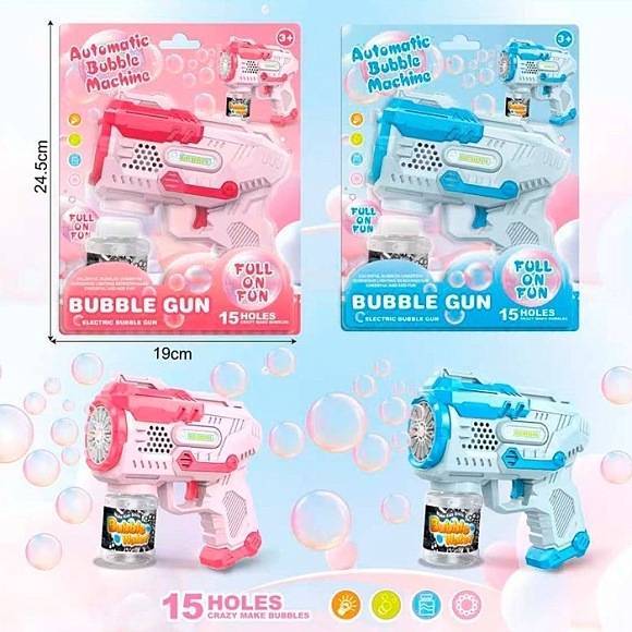 Опис Мильні бульбашки YD-705A пістолет,світло, запаска.2 кольори,бат.бліст.19-24,5-6см