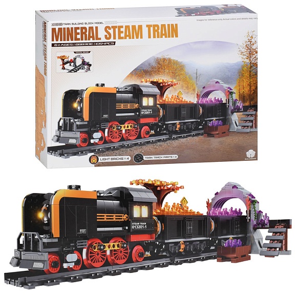 Опис Конструктор BB830E поїзд, дорога, тунель, світло, магнитні кріпл.,1054дет,бат(табл),в кор.,45-32-8см