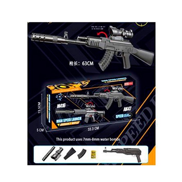 Опис Автомат 9907 стріляє водяними кулями, приціл, кор., 33,5-13,5-5 см.