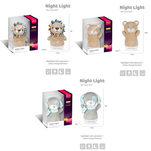 Опис Нічник mbq664-2a-5a-9a світло (кольоровий), 3 види, бат., кор., 15-18-10 см.