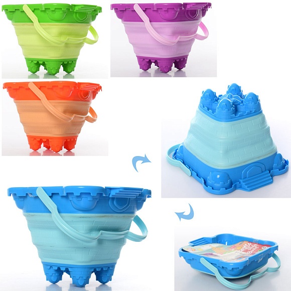 Набір для пісочниці 6914 відро (складне), 4 кольори, 18-18,5-5,5см.