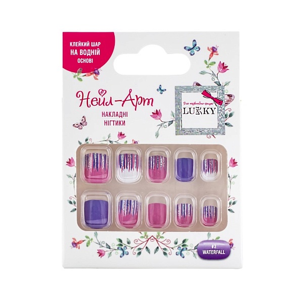 Опис Дитячі накладні нігті на липкій основі багаторазового використання (10шт) waterfall