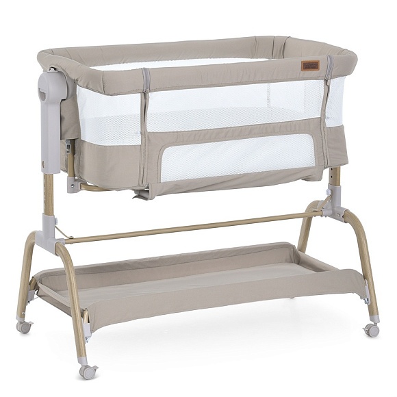 Опис Приставне ліжко ME 1180-W INTENSE Taupe Beige з функцією заколисування,дитяче,4кол.,матрац,гойд.,беж