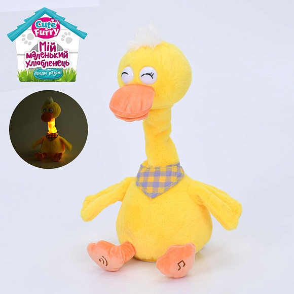 Опис М'яка іграшка fg240408183a каченя, рухає крилами, повтор, муз., бат., кул., 31-14-17 см.