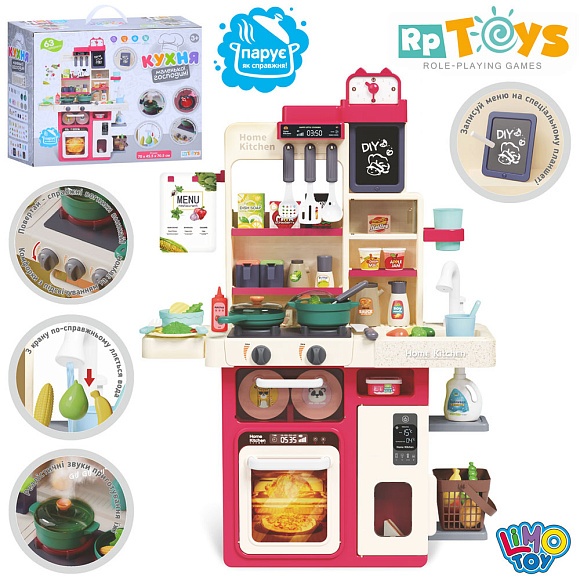 Кухня WD-825A плита,мийка-ллється вода,пара,звук,світло,посуд,продукти,дошка для малюв.,крейда,губка